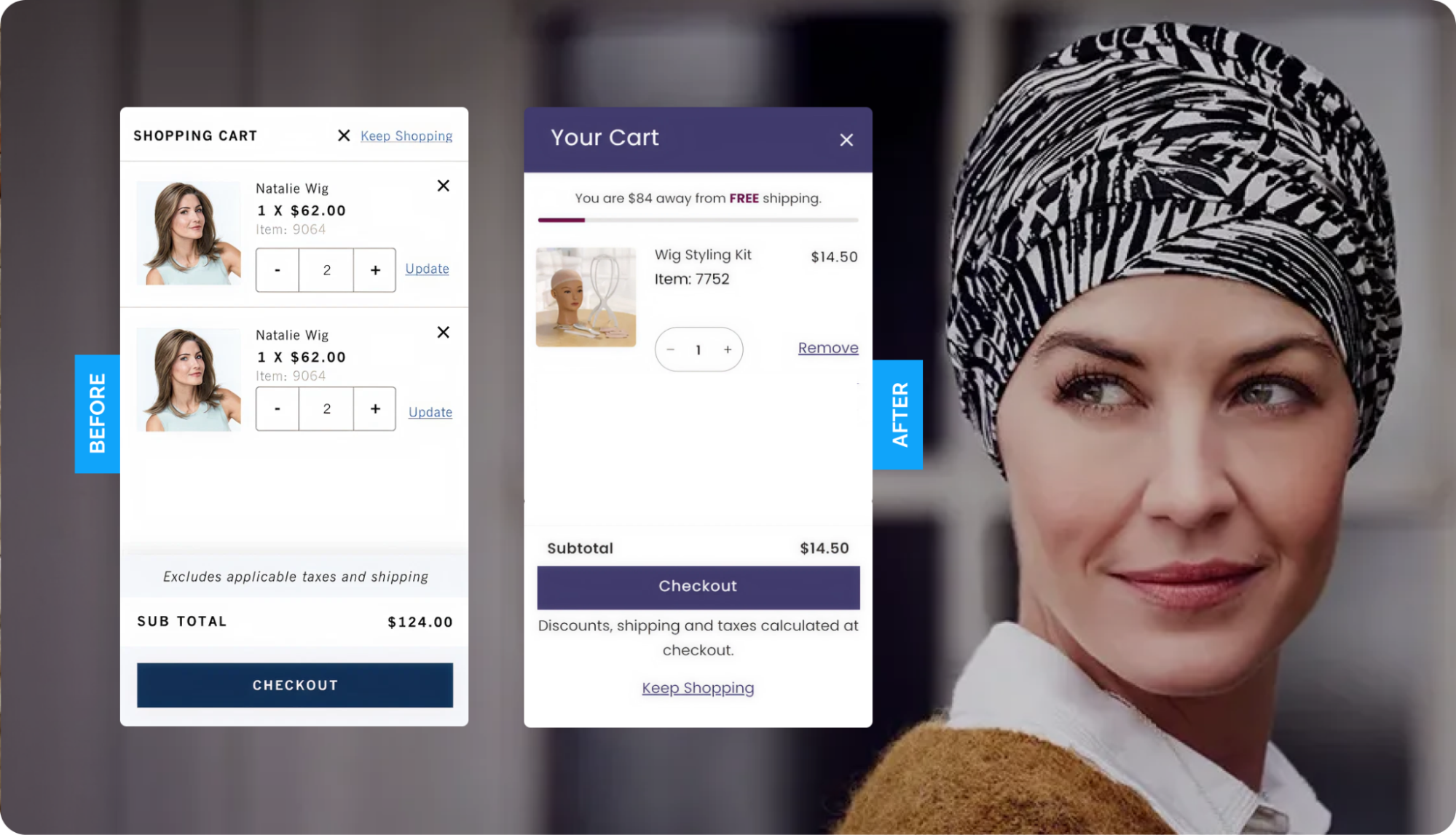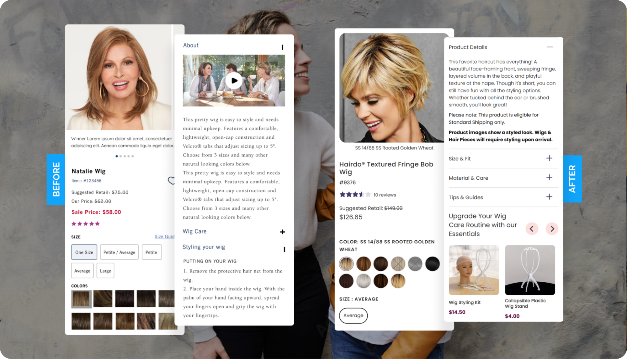 - Hover states on variants for easier color and style comparison (especially for wigs)